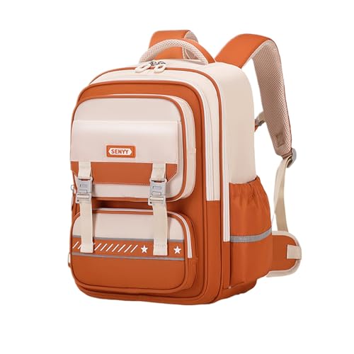 Sac à Dos Enfant Maternelle - Cartable Léger et Ergonomique avec 3D Rembourrage, Bandes Réfléchissantes et Matériau Durable - Parfait pour Fille et Garçon(Orange,L)