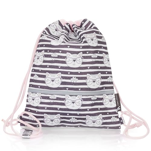TA Trend Atelier Sac de gym enfant maternelle en polyester recyclé – imperméable, sans PFC, avec réflecteurs et sangle poitrine (Chat)