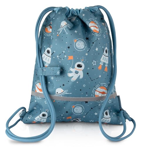 TA Trend Atelier Sac de gym enfant maternelle en polyester recyclé – imperméable, sans PFC, avec réflecteurs et sangle poitrine (Espace-Bleu)