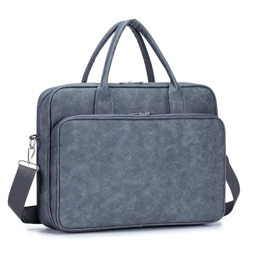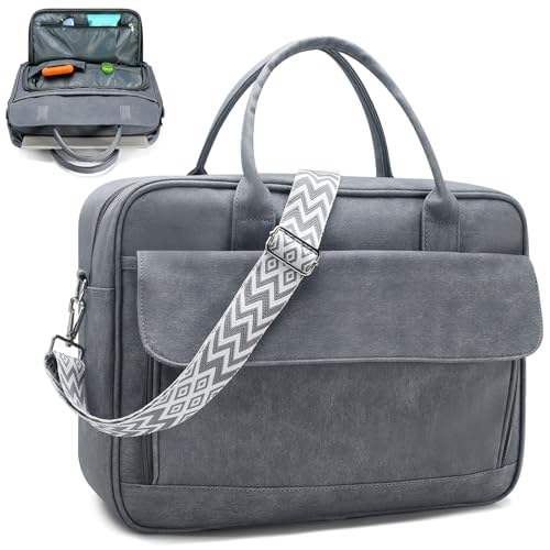 BAGZY Sacoche Ordinateur 15.6 Pouces Pour Femme Sac a Main Imperméable Sac Enseignant Cuir Porte Document Pour Collège Cours Travail Affaires Voyage (Gris)