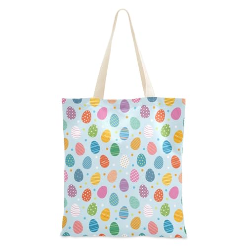 FRODOTGV Sac fourre-tout en toile avec poches, motif œufs de Pâques, sac fourre-tout pour enseignant, cadeau pour femme, sac fourre-tout en toile unie bon marché, Œufs de Pâques Motif Vacances, 1 Size