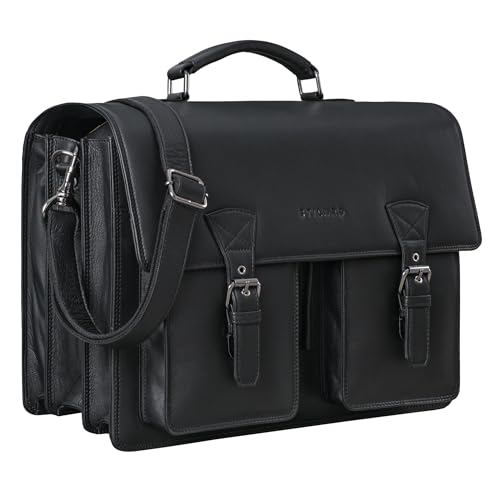 STILORD "Cory Serviette Cuir Homme Femme Grand Sac Enseignant XL Cuir Véritable 15.6 pouces Ordinateur Sac Business Vintage avec Sangle Valise Couleur:noir