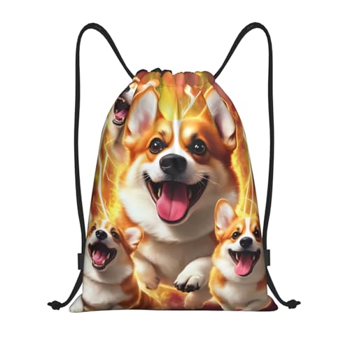 Sac À Dos À Cordon De Serrage Adorable Corgi Family Light-Ning Drawstring Bag Moderne Gym Sacksacs De Gym Tout Âge Sac À Dos avec Cordon pour Gymnastique Natation Plage
