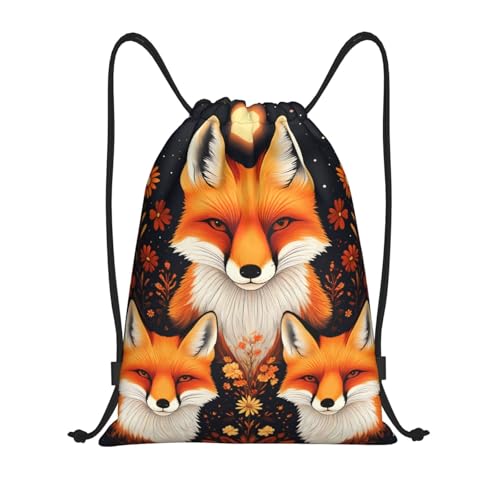 Sac À Dos À Cordon De Serrage Fox Family Florals Night Drawstring Bag Unisexe Gym Sacksacs De Gym Tout Âge Sac À Dos avec Cordon pour Natation Gymnastique L'École