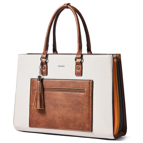 Shrrie Sac à dos pour ordinateur portable 16 pouces femme, sac fourre tout en cuir imperméable, Sac à main pour femme, porte-documents, sac de travail, Beige avec Marron