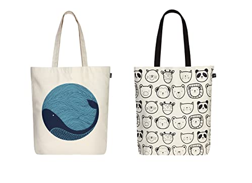 Eco Right Sacs fourre-tout esthétiques en toile pour femme, sac fourre-tout réutilisable avec fermeture éclair, idéal pour les courses, le shopping, les voyages et une utilisation quotidienne, Elfish