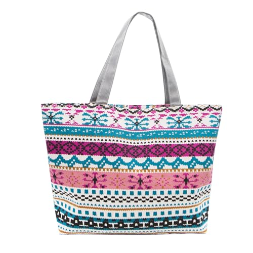 YAMEIZE Grande Sac Cabas Femme Sacs Fourre Tout Toile Bohême Bandouliere Éclair et Poches Sac a Main pour le Shopping le Voyage le Travail