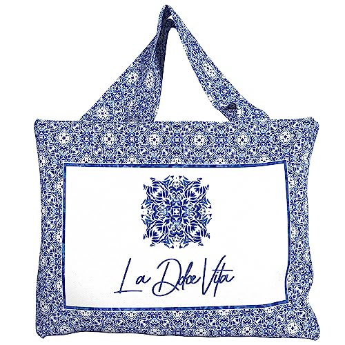 PETTI Artigiani Italiani - Sac Shopper Femme, Sac fourre-tout, sac à provisions réutilisable, sac de plage, sac Shopper tissu, nœud rose, 100% fabriqué en Italie, Dolce Vita, Borsa Shopper - 38x48