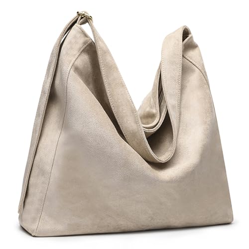 Gluckstar Sac a Main Femme Grand Sac Cabas Femme, Sacs Fourre Tout en Daim, Sacs à Main Portés Épaule Femmes Avec Bandoulière Réglable, Suédé pour le Quotidien, Travail et Courses Beige