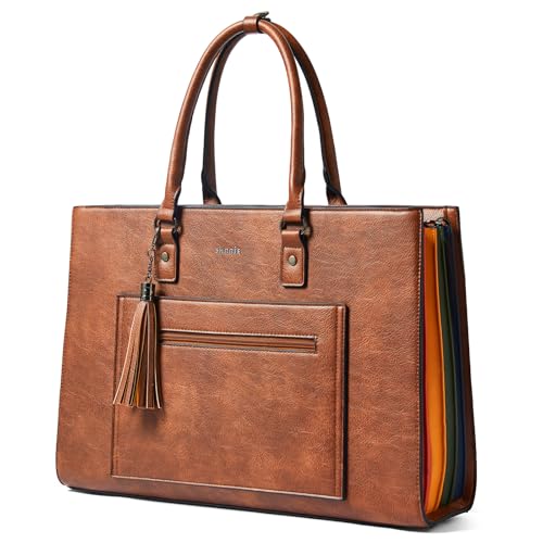 Shrrie Sac à dos pour ordinateur portable 16 pouces femme, sac fourre tout en cuir imperméable, Sac à main pour femme, porte-documents, sac de travail, Marron Bicolore