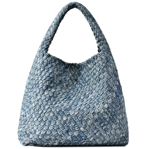 GASSDA Sac à main tissé en cuir végétalien tissé pour femme, sac fourre-tout tissé, sac à bandoulière avec poignée sur le dessus, bleu, X-Large