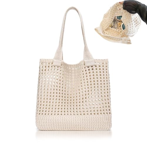 EIMMBD Sacs en crochet pour femme, sac fourre-tout de plage, sac fourre-tout esthétique, sac à bandoulière, sac hippie en tricot, beige
