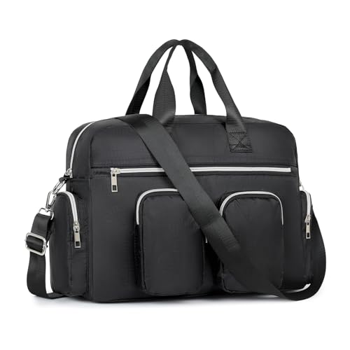 Kono Sac à main avec poignée sur le dessus pour femme, sac à bandoulière multi-poches, sac fourre-tout léger pour femme, sac fourre-tout léger pour le travail, le shopping, les voyages, Noir pur,
