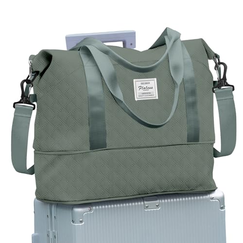 SEAFEW Sac de Voyage Femme Sac fourre-Tout de Sport Imperméable pour Week-End, Cabine Avion Ryanair Bagage Cabine 40x30x20 Easyjet 45x36x20 Extensible pour Travel Gym Danse,A22-beige Vert