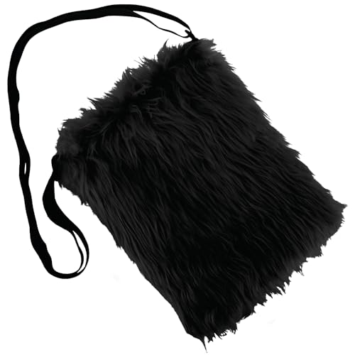 com-four® sac à bandoulière noir - sac à bandoulière en peluche - sac à main avec fermeture éclair et bandoulière réglable - sac avec fausse fourrure pour soirées à thème (Sac noir)
