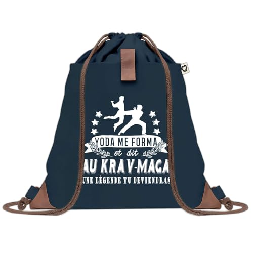 Sac à Dos Bleu avec Pochette Krav Maga Légende Humour Geek – Sac de Sport et Gym avec Cordelettes en Toile – Sac Doudou – Idée Cadeau Original Collègue, Anniversaire ou Départ Retraite