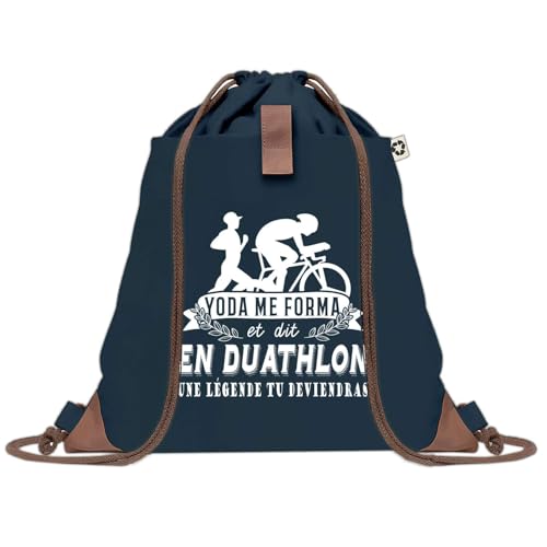 Planetee Sac à dos Bleu avec pochette Triathlon Légende Humour Geek – Sac de Sport et Gym avec Cordelettes en Toile – Sac Doudou – Idée Cadeau Original Collègue, Anniversaire ou Départ Retraite