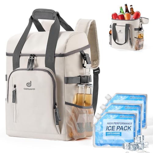 Odoland Sac à Dos Isotherme Contient 30 Boîtes avec 3 Packs de Glace et Décapsuleur, Sac Glaciere Isotherme Multifonctionnel avec Fermeture Éclair Étanche pour Camping, Pique Nique, Tissu Oxford 600D