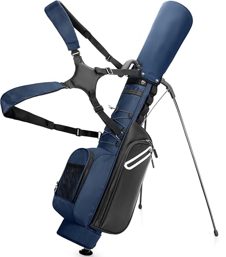 GOBUROS Sac de Golf Trépied pour 1 à 7 Clubs, Design Compact pour Parcours par 3 et Practice, Sac Idéal pour Pitch et Putt, avec Doubles Sangles Ergonomiques Rembourrées, Housse de Pluie, Bleu