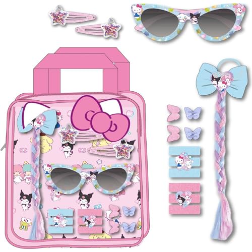 Set de beauté sac à lunettes Hello Kitty | Accessoires cheveux avec pinces, tresse, lunettes et jarretières | Kit enfant Sanrio style kawaii