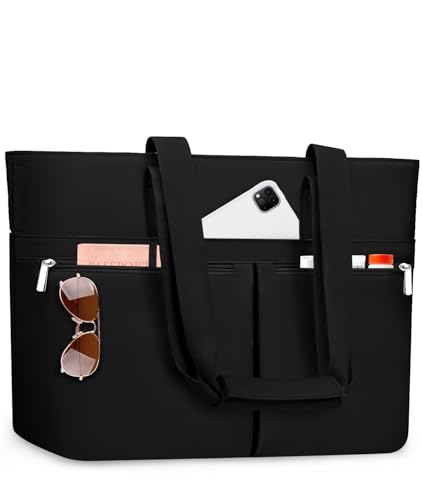 ENONEO Grand Sac de Plage avec Fermeture Éclair 45L, XXL Famille Sac de Plage Imperméable Piscine Sacs Cabas Femme Voyage Pliable Beach Tote Bag pour Plage Piscine Gym Vacance (Noir pur)