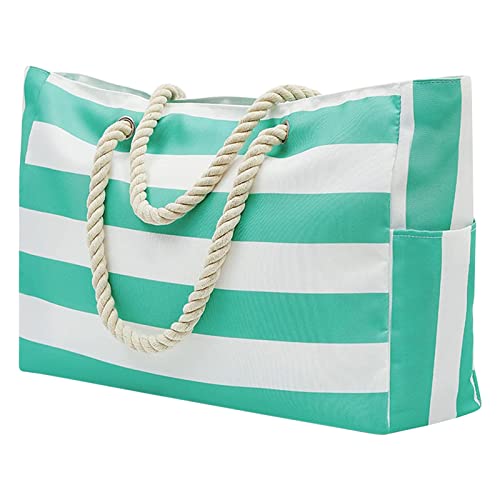 Sac de plage pour femme, sac de piscine imperméable et résistant au sable, grand sac de plage avec fermeture éclair à rayures, Vert, Taille unique