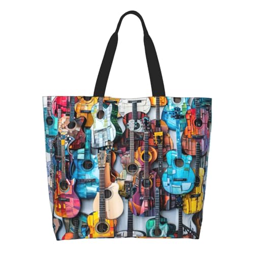 Sac À Main Guitares Acoustiques Et Colorées Pliable Sac Piscine Imperméable Sacs Portés Épaule Pour Femme L‘École Maman