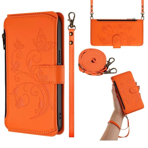 xinyunew Coque Sac Bandoulière pour iPhone 17 Pro, Etui Rabat Anti-Chute Portefeuille en Cuir, Multifonctionnel Coque avec Bandoulière Réglable,Orange
