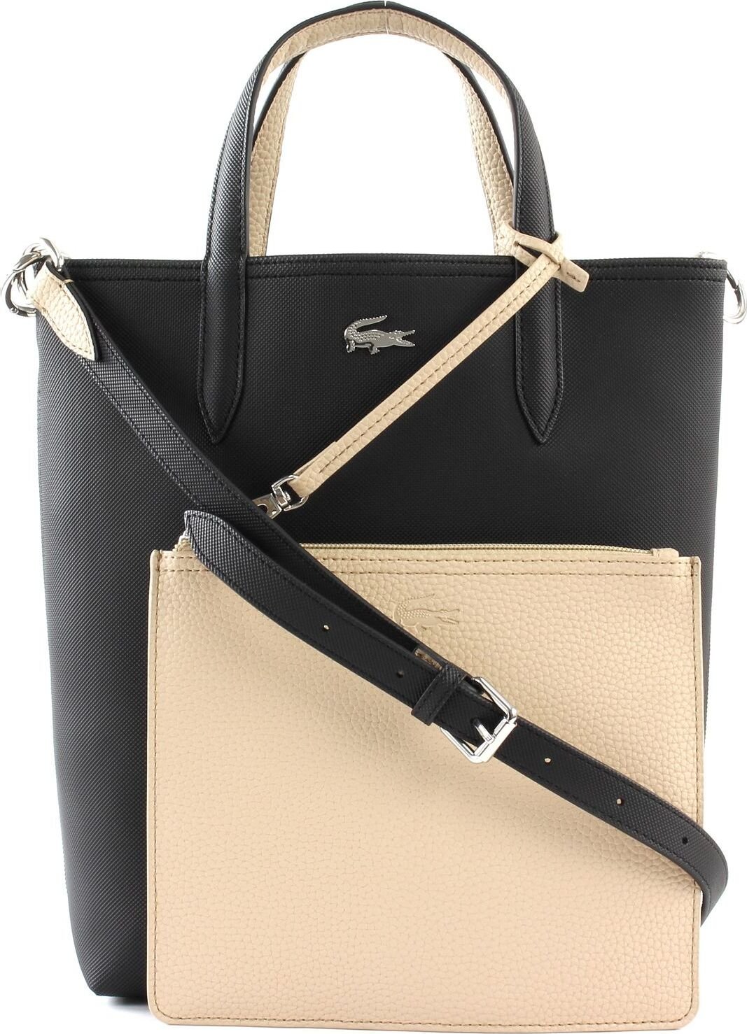 LACOSTE sac à épaule Anna Vertical Shopping Bag Black Warm Sand noir beige