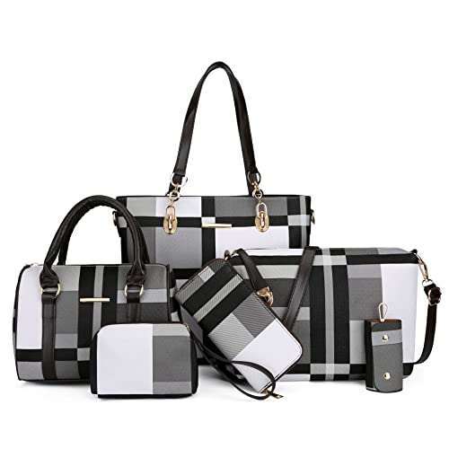 2E-youth Sacs à main et pochettes de designer pour femme, sac à bandoulière, sacoche, fourre-tout et sac avec poignée sur le dessus, Noir, blanc, gris., Large