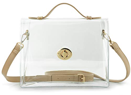HOXIS Sac à main transparent avec fermeture à verrou tournant pour femme approuvé par le stade, marron, Small