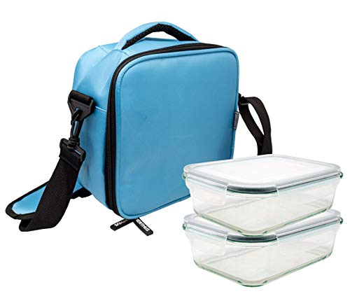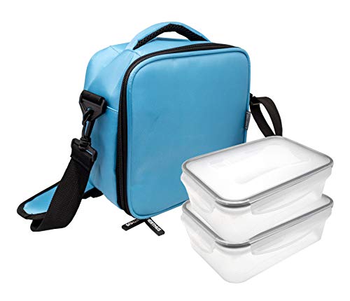 NERTHUS Fih 689 Sac à Lunch Bleu Clair+2 Hermétique 500 ML 1000 ML, 2 Hermétiques Moyen et Grand 22 X 22 X 12 Cm
