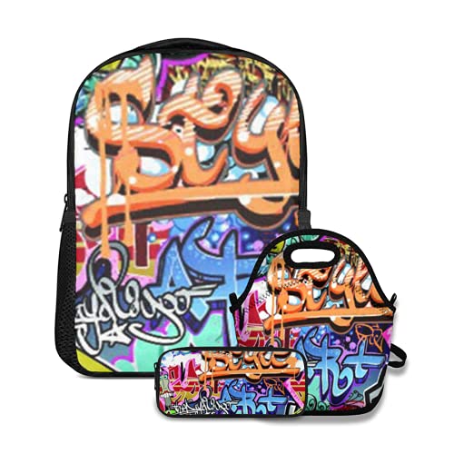 Ensemble de sac à dos d'école,Graffity Graffiti mur,avec sac à lunch et étui à crayons pour cartable d'adolescent