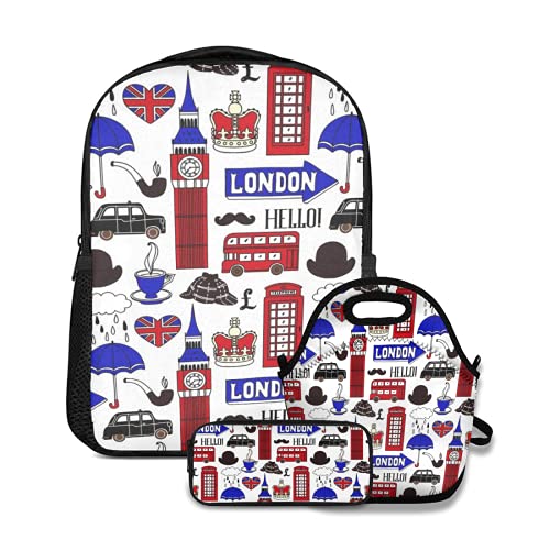 Ensemble de Sacs à Dos pour l'école,Motif sans Couture avec Symboles de Londres et,avec Sac à Lunch et Trousse à Dos pour Adolescents