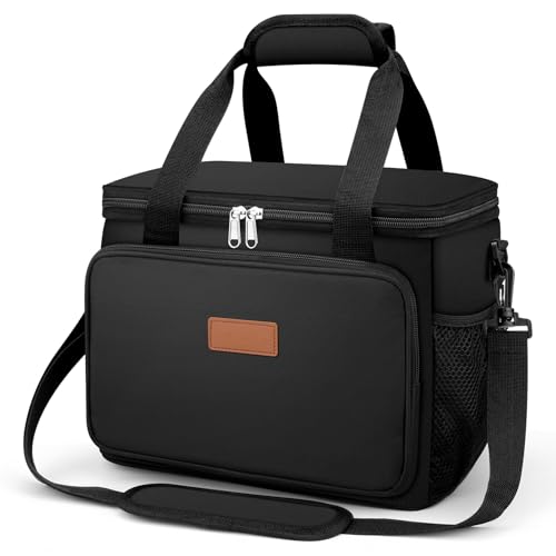 Oamwrae 8.6L Sac Isotherme Repas, Sac Glaciere Repas Antifuite, Sac Lunch Box Avec Bandoulière Réglable, Grande Ouverture Lunch Bag pour Travail, Pique-Nique, École (Noir)