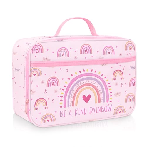 Clastyle Sac Isotherme Repas Enfant Arc-en-ciel, Sac Lunch Box pour Fille L'école Petit, Sac Dejeuner Rose Papillon Portable