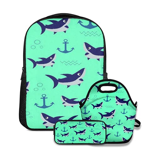 Ensemble de sac à dos d'école,Shark and Anchor,avec sac à lunch et étui à crayons pour cartable d'adolescent