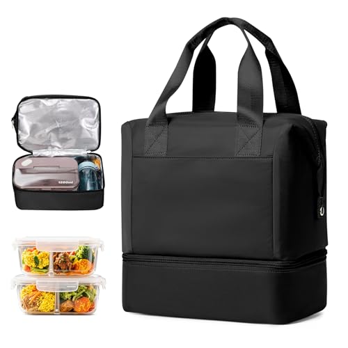 HPLQQ Sac Isotherme Repas 2 Compartiments, Lunch Bag Isotherme Femme, Glacière Repas Portable Sac Lunch Box pour Travail, École, Pique-Nique, Voyage,C1-Noir