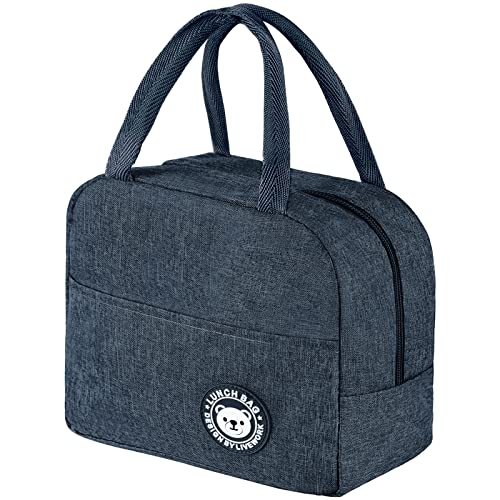 HPLQQ Sac Isotherme Repas Femme, Lunch Bag Isotherme Portable Avec Bandoulière, Sac Lunch Box pour Travail, École, Pique-Nique, Voyage,A5-Bleu Marine