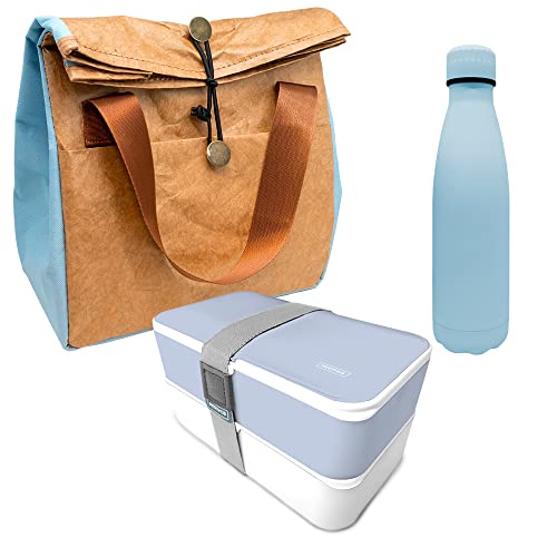Nerthus FIH 1041 set bouteille acier inoxydable double paroi lunchbox isotherme et sac isotherme bleu idéal pour l école