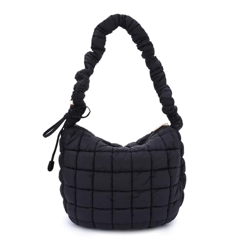 VICUTU Sac fourre-tout matelassé pour femme, sac à bandoulière rembourré et bouffant, sac à bandoulière doux et léger avec fermeture éclair, Aa-black, Large
