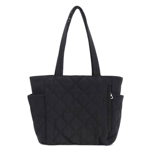 EVEOUT Sacs portés épaule Puffer Matelassé pour Femmes Léger Cabas Matelassé Sac fourre-Tout Puffer Grand Sacs bandoulière Minimaliste pour Travail Université(Noir)