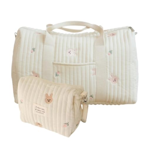 Sac d'accouchement Hôpital Maman Grande, Sac Poussette Ensemble de 2 Pièces, Bébé Changement, Mommy Bag, Épaule en Coton avec Broderie, Impression Mignon Portable Universel, B, 1