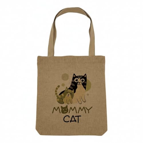 Fabulous Sac Shopping Tote Bag Aspect Lin - Mommy Cat and her Kitten Drawing Illustration Bebe - Sac de Courses Toile Epaisse 360g Beige Naturel Cabas Porté Epaule Solide Imprimé en France