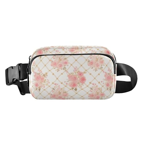 Monogramme Sac à bandoulière élégant à carreaux or rose pour homme et femme, sac de poitrine résistant à l'eau avec sangle réglable pour voyage, shopping, course à pied