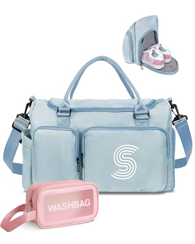 Elilier Sac de sport initiale pour filles, sac de voyage pour enfants, sac de sport, sac de week-end personnalisé avec compartiment à chaussures, sac de nuit monogramme, sac de soirée pyjama, sac de