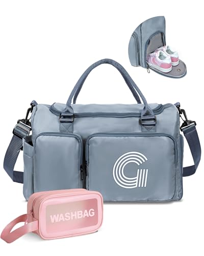Elilier Sac de sport initiale pour filles, sac de voyage pour enfants, sac de sport, sac de week-end personnalisé avec compartiment à chaussures, sac de nuit monogramme, sac de nuit, sac de danse,