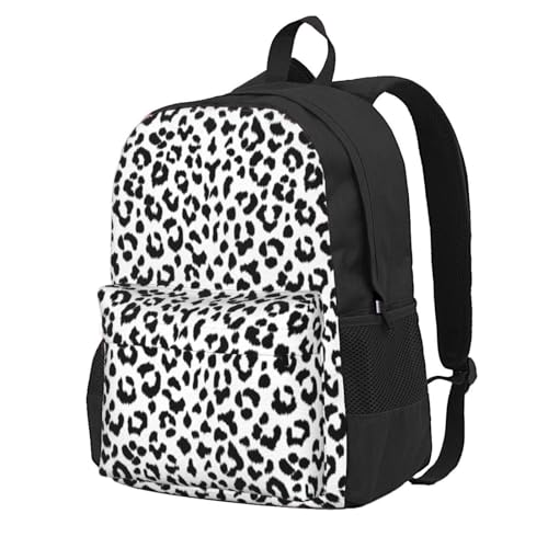 Hnnkloy Imprimé léopard noir et blanc avec monogramme,Sac à dos de 17 pouces avec poches, sac à dos décontracté pour la journée, résistant à l'eau, sac d'école