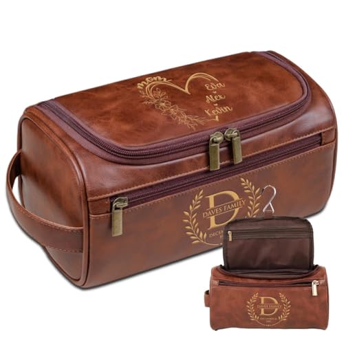 Trousse de toilette personnalisée - Kit de rasage personnalisé en cuir pour homme, sac Dopp avec monogramme gravé, cadeau pour mari, papa ou amis pour Noël ou anniversaire