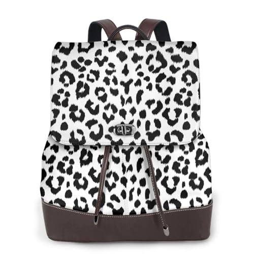 Imprimé léopard noir et blanc avec monogramme,Sac à dos imperméable pour femme, sac à dos de voyage léger en cuir PU tendance